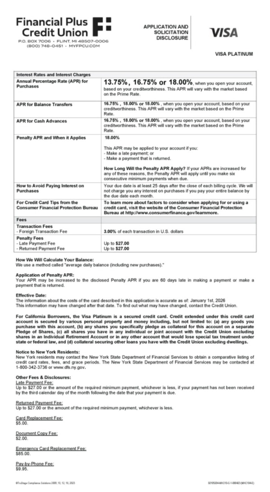 So, why get a credit union credit card like the Financial Plus Visa Platinum? Because it's not just a credit card – it's a smart choice that puts you first, rewards you for your loyalty, and supports your financial journey every step of the way. Ready to experience the credit union difference? Join us and let's start building a brighter financial future together.