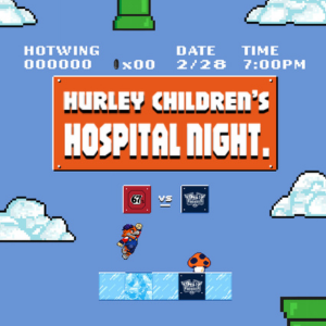 Cheer on the Firebirds in Mario-themed jerseys, enjoy the post-game jersey auction, and join the 50/50 raffle, benefiting the Hurley Foundation.